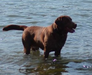 Agav is a 1-year-old male chocolate Labrador Retriever. Has microchip.