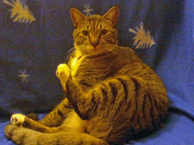 Last seen on Friday August 29, 2014 at Alex is a 2-year-old male cat. Short-haired tiger with white toes and white belly and white neck; nervous around people he doesn't know; gets scared of loud noises and runs to hide. Has a blue collar with pink name tag. If you think you've seen this pet, please call 617-964-3607 or 617-602-5285 or email rlateva@gmail.com Thank you!