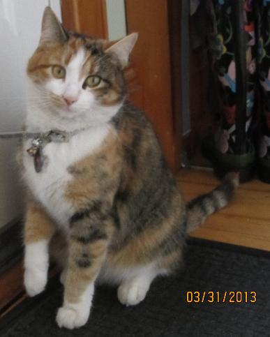Last seen on Friday, August 2, 2013 at Doris Ave., Brockton, MA. Ariel is an indoor/outdoor cat and had never not returned before. She is a 1.5 year old female American Shorthair with calico (tortoiseshell and white) fur. She was wearing a silver collar with a name plate and jingle bell when she left home. Ariel hardly ever meows -- she is mostly silent.