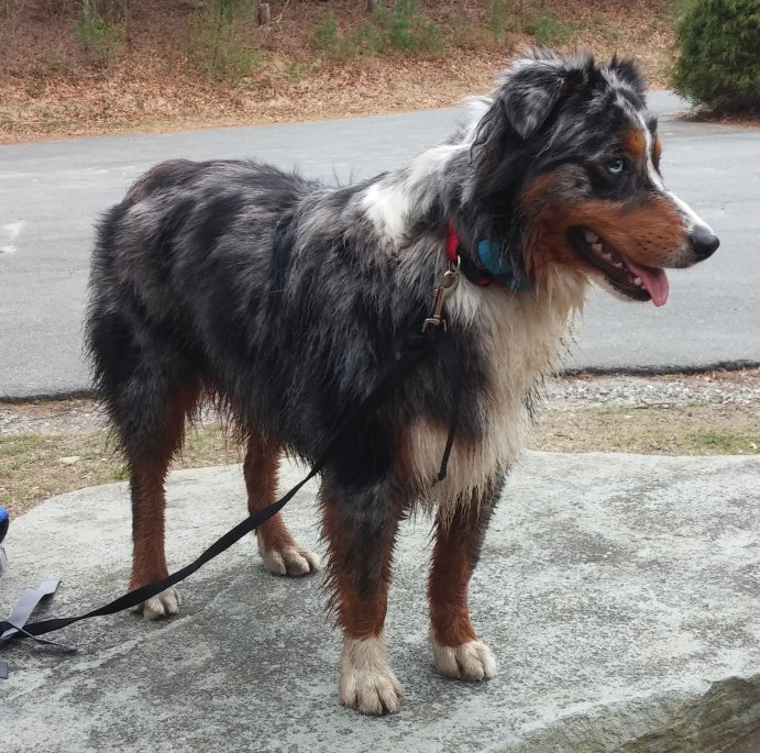 Aspen is a one and a half year old blue merle Australian Shepherd. Thank you!