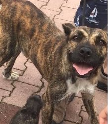 Last seen on Wednesday August 8, 2018 at Maple St., Wenham, MA. Azore is a 1-2-year-old male Sao Miguel cattle dog. He is 40lb, brindle color and wearing collar and tags. Thank you!