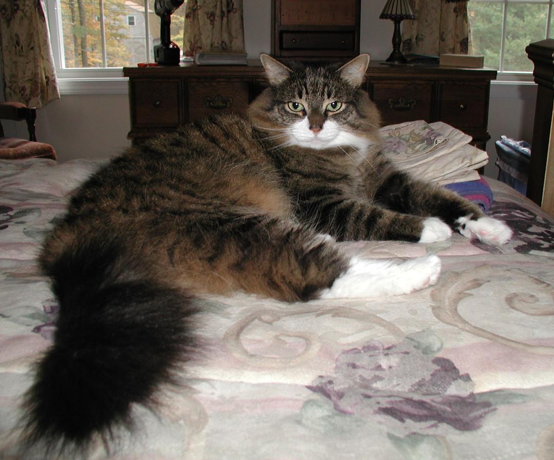 Last seen on Sunday March 23, 2014 at Ash St., Hopkinton, MA. Bailey is a 16-year-old Maine Coon cat. He has big white cheeks, a white chest and white paws. The rest of him is Maine Coon coloring. Thank you!
