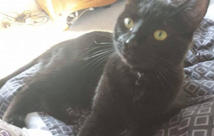 Last seen on Sunday September 4, 2016 at Vista Circle, Rutland, MA. Banie is a neutered black DSH cat, black with a white tip on its tail, wearing a black collar with white stars and moons, with bell attached. If you think you've seen this pet, please call 508-414-9857 Thank you!