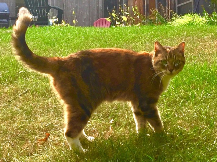 Last seen on Monday October 1, 2018 at Lancelot Lane, North Easton, MA. Cammie is a brown 10 year old domestic shorthair who typically does not spend a lot of time outdoors. She is somewhat frail and very timid. If you think you've seen this pet, please call 508-446-5050 or email pianoman8382@gmail.com Thank you!
