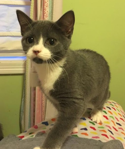 Last seen on Wednesday March 6, 2019 at 1 Freeman Circle, Plymouth, MA. Castiel ("Casi") is a 6-month-old grey and white short haired kitten with double paws. Underneath her chin is grey. She is very friendly and curious. Thank you!