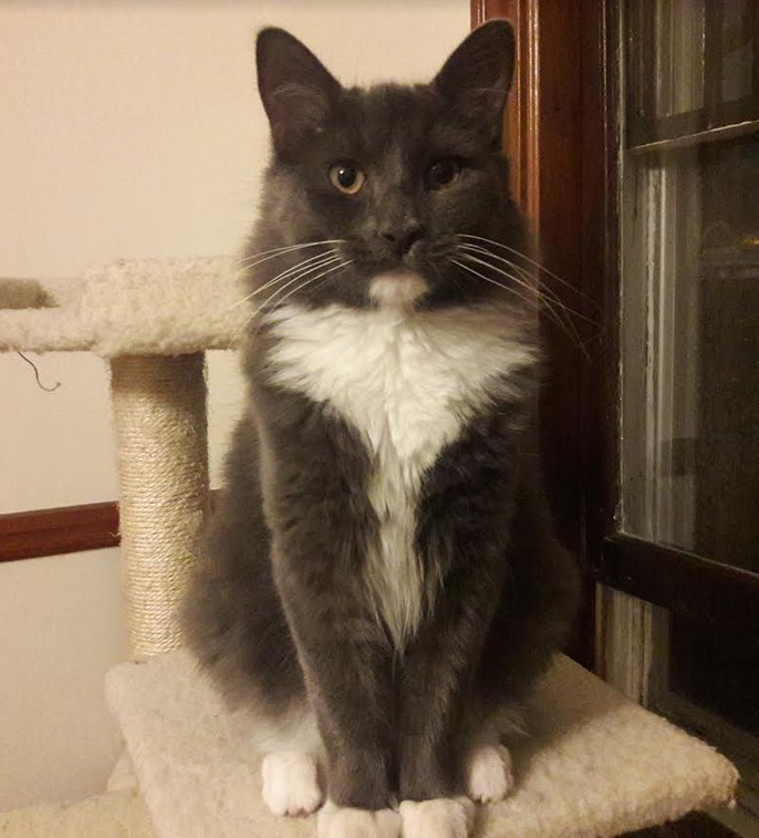 Long-haired Grey & White Cat Missing in Medford