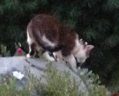 Found/seen roaming on Wednesday, August 14, 2013 at Briarwood Townhouses, Oakdale St., Attleboro, MA. Domestic short-haired cat - white face/belly and calico/stipe grey/brown on back/tail/head. If you think you recognize this animal, please call 508-989-4239 or email aholden2578@comcast.net Thank you!