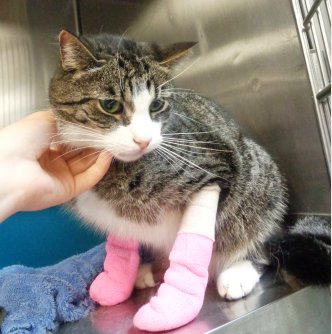 Found on Monday July 27, 2015 at Loon Hill Rd., Dracut, MA. This cat was brought in to us by our Dracut ACO. The cat was dragged by a car. He is a neutered male, Grey tiger with white on his face and paws, DMH. If you think you recognize this pet, please call Wignall Animal Hospital at 978 454-8272 or email achmiel@wignall.com Thank you!