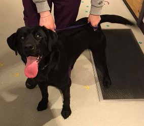 A delivery driver was passing through Savoy, MA and found this dog in the middle of the road. This is a young black male lab, around 3 years old, unneutered, no tags or microchip. The dog is currently at the Family Veterinary Center, 99 Main St., Haydenville, MA.