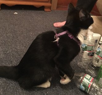 Found on Friday August 24, 2018 at 15 Wells St., Southbridge, MA. Male black and white cat - looks young, perhaps a year old. Wearing a purple harness. If you think you recognize this pet, please call 774-276-1918 or email caraicle@yahoo.com Thank you!