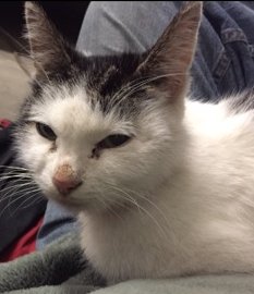 Found at a bay of shop garages. It looks like it has been on its own for a while as it is very thin. After asking around the shops some have said they have seen the cat around over the last couple of months. If you think you recognize this pet, please call 978-809-7728 or email melhall682002@yahoo.com Thank you!