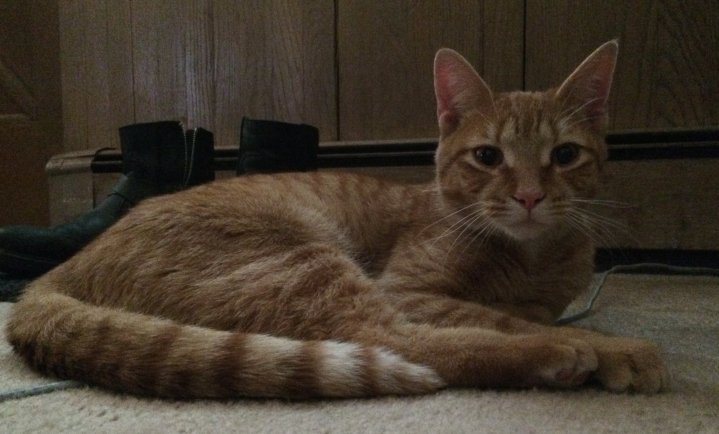 Found on Monday December 12, 2016 at Parkview Rd., Woburn, MA. This cat was found Dec 12, the day of the first snow fall. It is male, loud, young and orange. If you think you recognize this pet, please email geraldmathis@rcn.com Thank you!