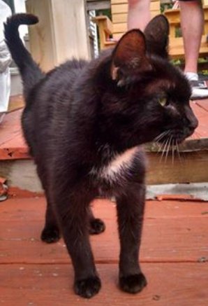 Found on Tuesday August 2, 2016 at Winifred Way, Rutland, MA. Domestic short-haired black cat with white on its chest. Extremely thin, does not appear to have a microchip, but friendly and sweet. If you think you recognize this pet, please call 508-688-9991 Thank you!