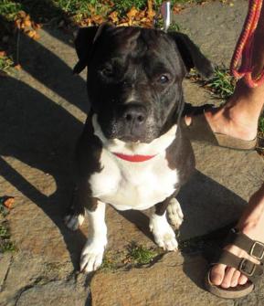 Found 7/8/12 at Chesterfield Gorge, West Chesterfield, MA. Cute young black and white, male pit bull with a bright (thick) red collar, no tags and not neutered. He seems to have been very well treated and has no bad habits that we can see. He does not chase our cat or chickens, and is fine with our two dogs. I would love to be able to find him his owner. If you think you recognize this animal, please call Judy at 413-296-4399 or email lyonsj@hughes.net Thank you!