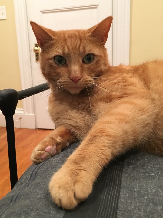 Last seen on Wednesday December 30, 2016 at Farqhuar St., Roslindale, MA. Garfield is a 7-year-old orange tabby cat with green eyes. He is microchipped and he is very friendly but on occasion he attacks his tail. If you think you've seen this pet, please call 617-523-0851 or 914-523-0851 or email peboudrot@gmail.com Thank you!