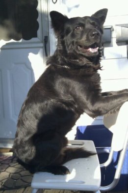Jasper is a black medium size male Chow.