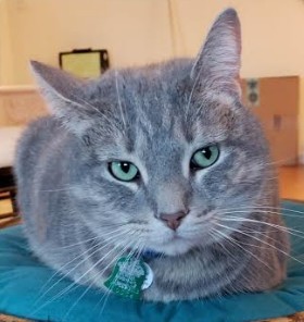 Kai is a 7-year-old male tabby cat, grey and apricot. Shy and scared. May have been spotted on June 2.