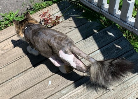 Last seen on Friday July 24, 2020 at Still River Rd., Sterling, MA. Kanye is a recently shaved DLH cat. Grey, brown, black and white. Part of his nose has a black outline but it doesn't go fully around, half of the bridge of his nose is white and the other part brown/grey, Just around his nose and mouth on one side he has some light brown and he has a small white patch near his shoulder bones on his back. If you think you've seen this pet, please call 508-335-9835 or email emily_renauld@hotmail.com Thank you!