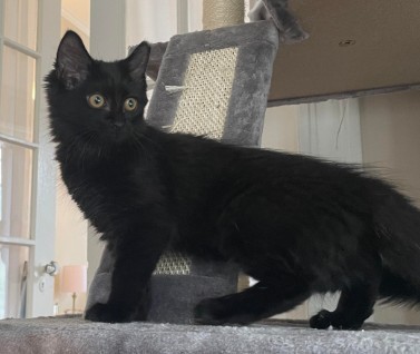 Lilith is a medium/longhair black kitten with a clipped left ear. Thank you!