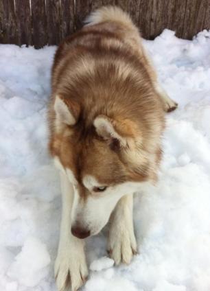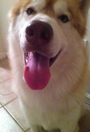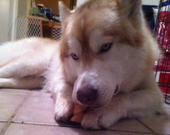 Siberian Husky, white and tan, male, 1 year and 9 months old.