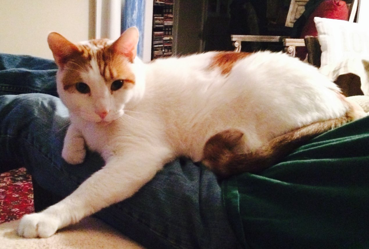 Lucky is a neutered male 5 yrs old, 18lb, super friendly, but has never been outdoors, so probably scared and hungry. Thank you!