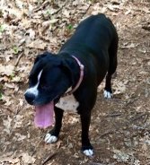 Last seen on Tuesday August 18, 2015 in Dedham, MA, at the Dedham/West Roxbuy line. Lucy is a black and white boxer with freckles on her chest. She has white that goes up from around her snout up between her eyes and has 4 white "socks." She has floppy ears and a really long tongue. She is microchipped but is wary around strangers and is petrified of thunder. Thank you!