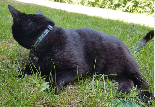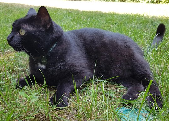 Last seen on Saturday August 13, 2016 at 72 KingstonRd., Waltham, MA. Mali is a 10-year-old neutered male European DSH black cat with a small white spot on the chest, green/yellow eyes, overweight. He was wearing a blue collar with small black fishes on it and with a black round tag with "Mali 617-301-1549" on one side, "72 Kingston Road Waltham" on the other. Very friendly and comes when he hears his name. Mali has a French "Virbac" microchip, but not sure if it can be read with US scanners.