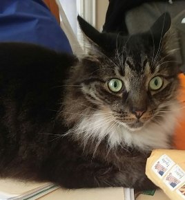 Last seen on Saturday July 28, 2018 at Parrott St., Lynn, MA. Max is a large neutered male Maine Coon mix. Black, Gray & White. White paws, white fluffy mane. Max is an indoor only cat who snuck out, he's probably very frightened. Thank you!