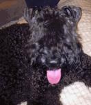 collar/tags at the time. These pictures show her bluer than in real life, she is basically dark grey with black undertones. Her coat is soft and curly/wavy, she needs a haircut and has a lot of hair over her eyes and muzzle. Dark brown eyes.