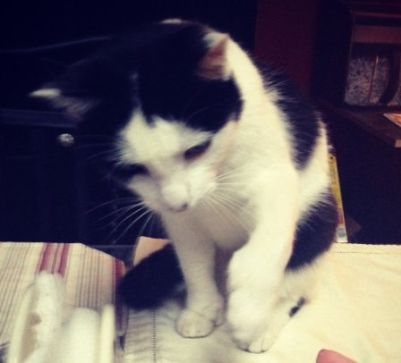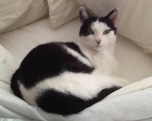Last seen on Thursday July 30, 2015 at Sanborn Ave., West Roxbury, MA. Murphy is a short haired domestic, white with black cow spots and a black tail. He is on the petite side, polydactyl and very talkative, especially if someone has treats. He is microchipped with our current info. Thank you!