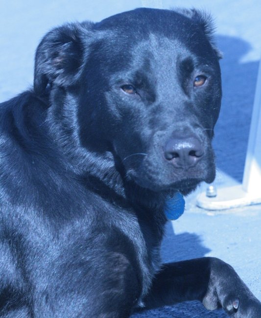 Oreo is a 2 year old Labrador Retriever mix, 65lbs. Jet black except for small white patch on chest. No collar. Is likely to be timid around strangers and strange dogs. Thank you!