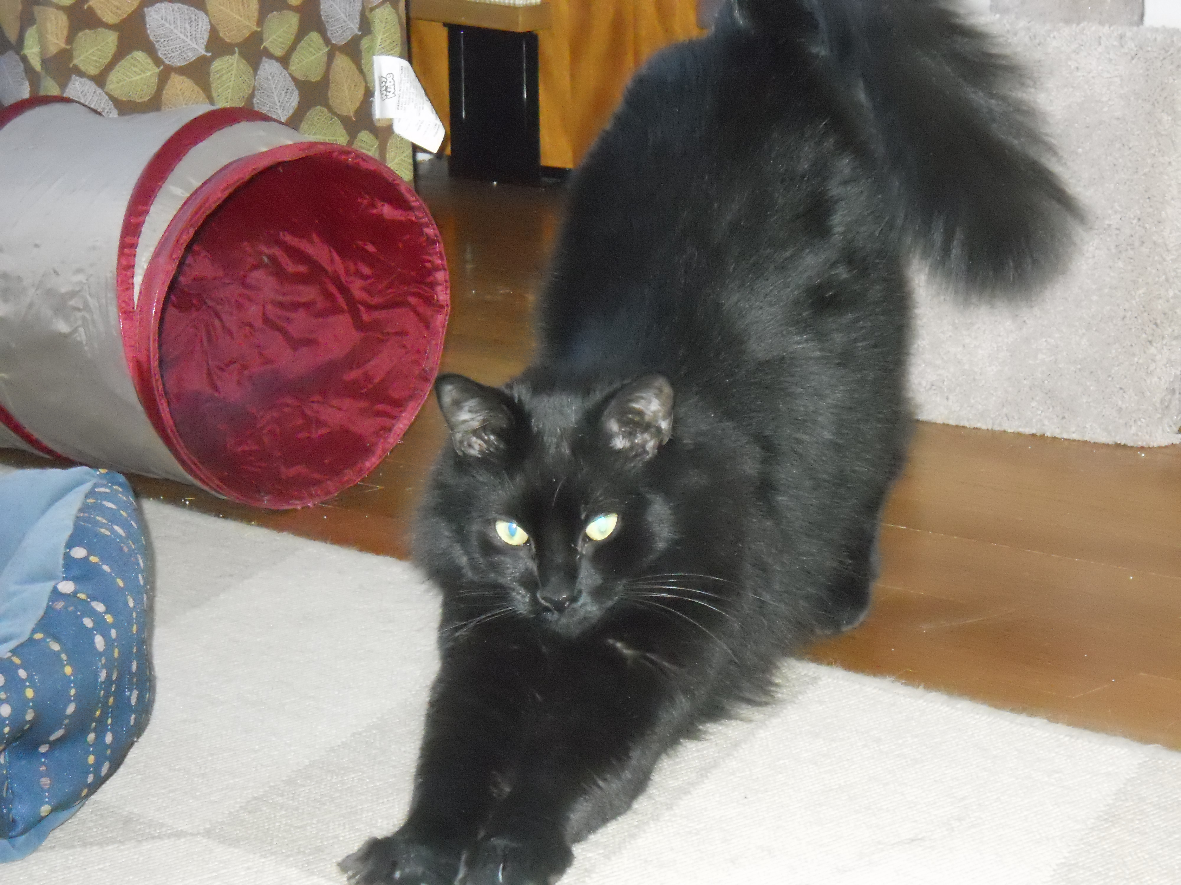 Otello is a sweet, but reticent five-year old indoor cat. He has a distinctive bushy, squirrel-like tail.