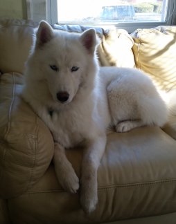 Last seen on Monday February 2, 2015 in Quincy, MA. Rainbow is a 10 months old female Siberian husky. She is pure white with blue eyes, she is very friendly, will come to people. Thank you!