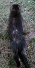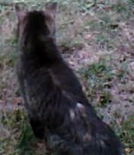 Spotted on Thursday September 25, 2014 at Buzzards Bay, MA. Gray/siver/brown/black (maybe some white patches), scruffy coat, face/cheeks wider and more furry than most cats. Snapshots are from security video and show the back only. Looks like it has black legs (at least, from the back), maybe white toes. If you think you recognize this pet, please email the spotter: gooddoggiesoftware@yahoo.com Thank you!