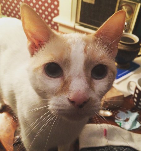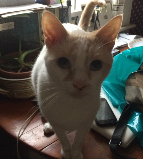 Last seen on Monday January 25, 2016 at Main St. and Franklin St., Greenfield, MA. Roark is a white Siamese cat, blue eyes, orange ringed tail, 7-8 years old, FRIENDLY! He has black freckles on his nose. Thank you!