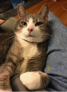 Last seen on Monday September 25, 2017 at Dunster Road, Holliston, MA. Shenanigan (answers to "Nanny") is an 8-year-old gray domestic short-haired cat with white face, chest and paws, weighing about 14 lbs. Wearing a Soresto collar. A bit skittish, but likes people. If you think you've seen this pet, please call 774-233-0477 or email captainjohn2007@aol.com Thank you!