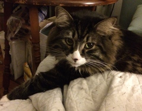 Last seen on Monday July 4, 2016 at Riverside St./Ladd St., Watertown Square, MA. Squid is a 4-year-old indoor, fluffy tabby cat that may be mistaken for a Maine Coon cat. He has a white belly and white socks as well as black dots on his nose. He is super friendly but has never been outdoors and is scared of loud noises like the fireworks people are shooting off in the neighborhood. If you see him try crouching down and putting out your hands to pet him- he normally will come to this. He is also responsive to relatively high pitched beep boop noises. If you think you've seen this pet, please call 781-929-6890 or email corielizabethspeaking@gmail.com Thank you!