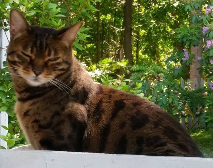 Last seen on Tuesday August 23, 2016 at Bailey Ave., Milton, MA. Teddy is a 7-year-old neutered male Bengal cat. He has green eyes, his coat is brown with black spots. He has a very small bald spot near his left ear. He doesn't have a collar but he does have a microchip. He is up to date on all his shots. He is very curious and will go under porches, in homes, basements, garages, sheds, cars and trunks if left open. He is shy with strangers but likes to watch from a short distance and sometimes follow behind for a moment. He does it with dogs all the time. He likes dogs. If you think you've seen this pet, please call 617-698-9845 or Milton Animal Control 617-698-0455. or email nccblue@gmail.com Thank you!