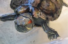 Last seen on Saturday June 27, 2015 at 23 Assabet Hill Circle, Northborough, MA. Unami or "U-U" is an 8-inch female Red Ear Slider turtle, approx. 10 years old. She is dark green and yellow with bright red ears, and has a small scar on the tip of her nose. Recently she shed all but one of her scutes and a partial abdominal on her plastron. Unami is likely very hungry, very scared and gravid. She may be egg-bound and in need of medical attention. REWARD If you think you've seen this pet, please call 508-351-6950 or email ayprice@gmail.com Thank you!
