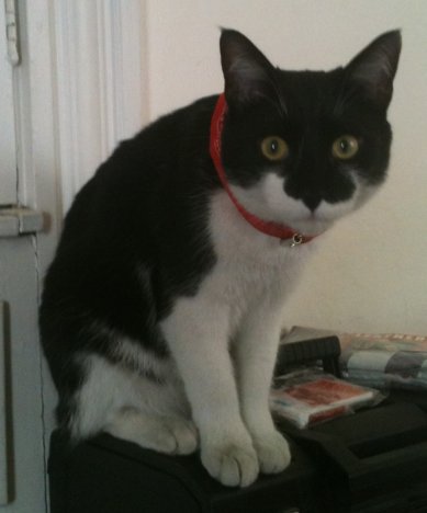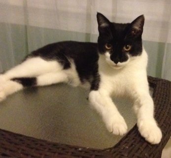 Vinny is a male domestic black & white cat, about 12lb, 2 years old. Microchip: 985-112-000-178-001
