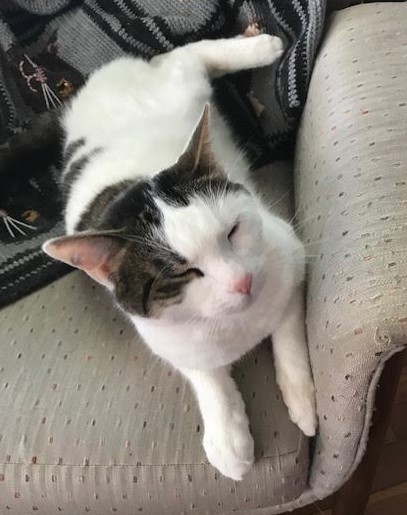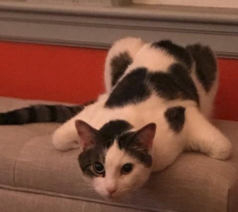 Last seen on Wednesday August 14, 2019 at Wompatuck State Park campground, site C21, Hingham, MA. Walter is a 5-year-old 12lb domestic short hair cat. He is white with tabby spots and he has green/yellow eyes. On his face, one of the spots covers one eye. He is microchipped with 24PetWatch. He was last wearing a red collar with a green tag. The green tag has our phone numbers written on it. He is a very friendly cat, but he is very skittish when he is scared. Thank you!